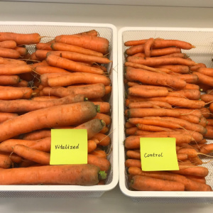 Morötter från vitaliserade frön till vänster. Obehandlade frön till höger. Foto: Tongyun Shen.