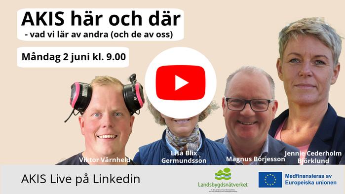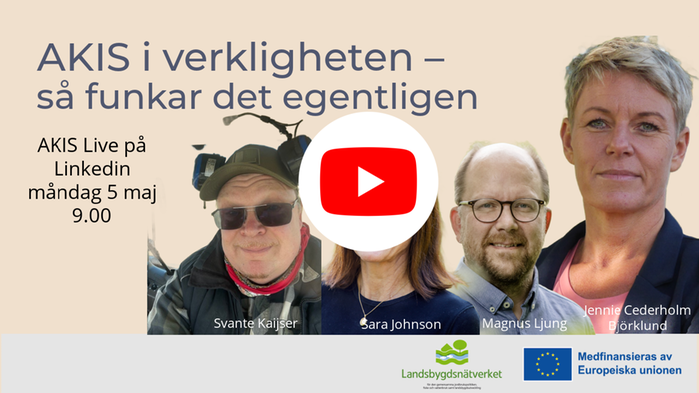 AKIS Live är en serie livesända samtal där vi utforskar vad AKIS är – Agricultural Knowledge and Innovation Systems – och hur det fungerar i praktiken här i Sverige.