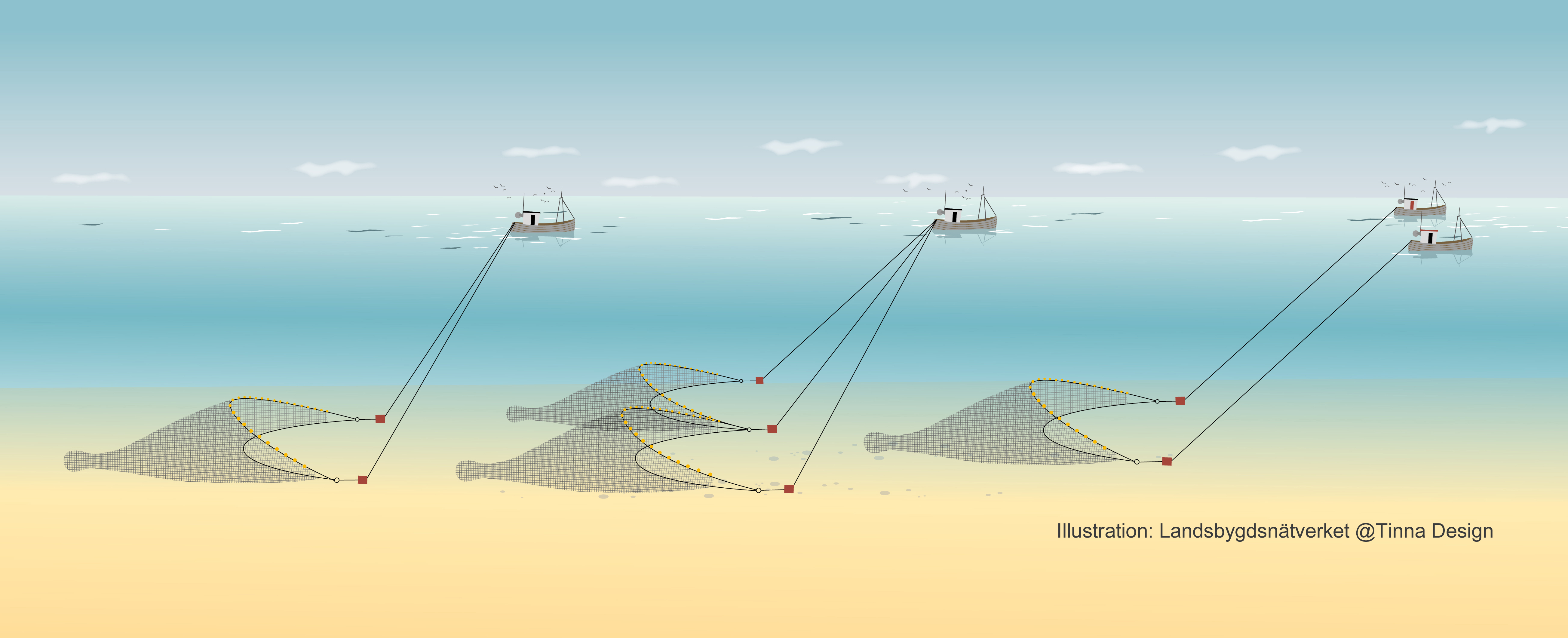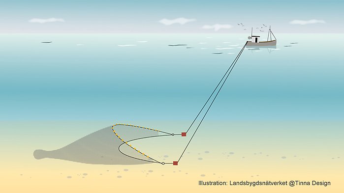 Bottentrål. Illustration: @Tinna Design.