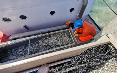 Fångsten pumpas in i en av Röns tre tankar – som tillsammans rymmer 120 ton fisk – där nollgradigt vatten pumpas in för att hålla fisken färsk. Även Vingasand har samma typ av tankar, och ungefär varannan fångst pumpas till henne istället. Fångsten landas därefter hos beredningsföretaget Scandic Pelagic i Ellös där den förädlas och skickas vidare till grossister på den svenska och europeiska marknaden.