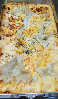Vi valde att göra en vildsvinslasagne då vi vet att lasagne är något som matgästgerna verkligen gillar och det är ett bra sätt att introducera en ny råvara på. Vi anpassade vårt vanliga lasagnerecept och valde att krydda med timjan. Det blev uppskattat och jättegott!