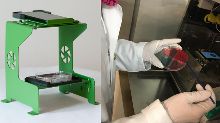 – Jag gjorde ett studiebesök på en gård och såg en djurskötare som tittade på en odlingsplatta för att se vilken mjölkbakterie som växte där. Man hade tagit ett prov på en ko som hade juverinflammation. Jag ställde några frågor till djurskötaren, som vad tittar man efter, vilka färgskiftningar och så vidare. Då slog det mig att det var typiska saker man skulle kunna lösa med bildbehandling och AI, Artificiell Intelligens, berättar projektledare Ellinor Eineren, uppfinnare av metoden Bacticam.
