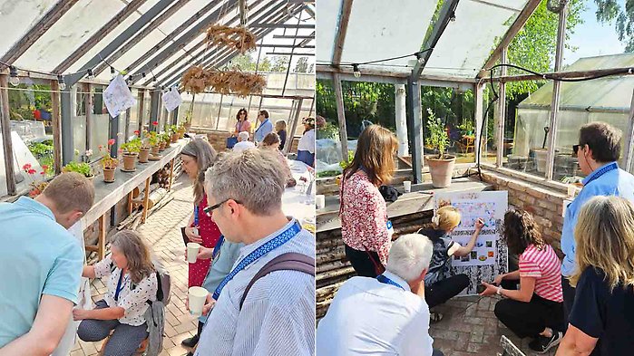 I ett av växthusen i Slottsträdgården fick deltagarna lära känna varandra genom att tillsammans lösa ett blomsterquiz.