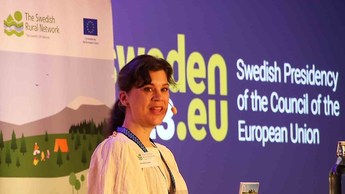 Sofia Björnsson guidade deltagarna genom programmet. ”De nationella nätverken spelar en viktig roll här och kan skapa en neutral arena där aktörer samlas för att utbyta erfarenheter kring genomförandet av den gemensamma jordbrukspolitiken. Bland deltagarna på denna konferens finns både förvaltningsmyndigheter, intresseorganisationer, rådgivare och forskare vilket är fantastiskt roligt” sade Sofia.