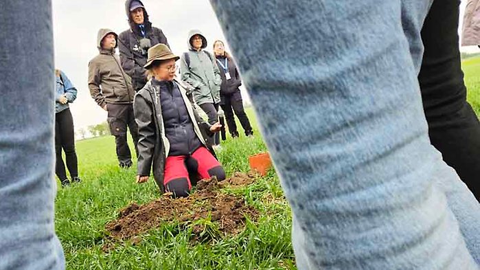 På eftermiddagen den 23 maj kunde deltagarna välja att åka på ett av tre studiebesök. På Krokstorps gård fanns Christina Berenheim, Svensk Kolinlagring, Martin Krokstorp, Krokstorps gård och Petter Haldén, Jordbruksverket, på plats för att berätta mer om kolinlagring, jordhälsa och biologiskt mångfald.