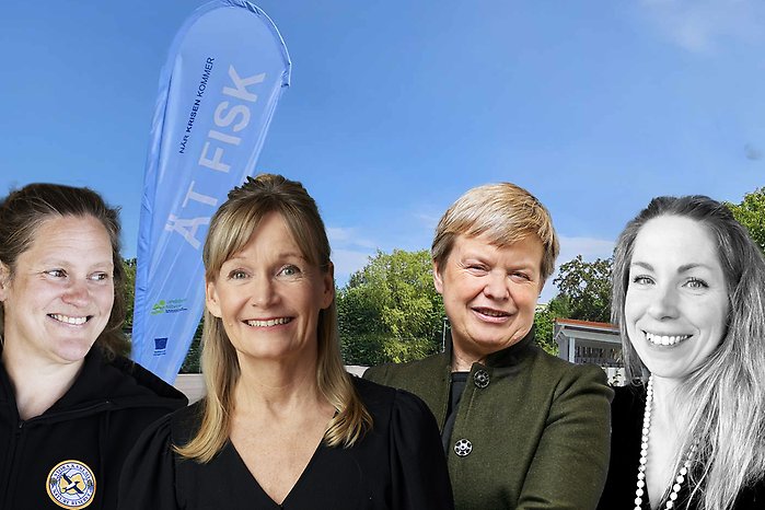 Hur kan svensk fisk bidra till tryggad beredskap och självförsörjning? Liv Mared, Stora Karlsö restaurang; Åsa Domeij, Axfood; Ingrid Undeland, Chalmers tekniska högskola och Veronica Andrén, Jordbruksverket, finns på scenen under seminariet som hålls på Östersjödagarna, Almedalen, 2025. Bilden är ett montage.