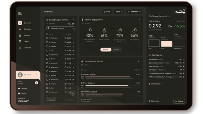 Improvin’ AB är ett techbolag som tillhandahåller digitala lösningar för kvarnar, förädlingsföretag och handel för att mäta, rapportera, verifiera och sänka sitt klimatavtryck i egen värdekedja ner på fältnivå. Med en plattform från Improvin’ ska dessa aktörer kunna skapa nya intäktsströmmar kopplade till hållbarhet, men också kunna möta nya regulatoriska krav på hållbarhetsrapportering