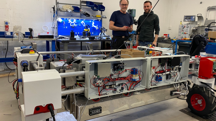 Ett nytt EIP-Agri-projekt ska utveckla en ogräsrobot för grönsaksodling. F.v. Lars Etzner och Albin Barklund. Foto Ekobot