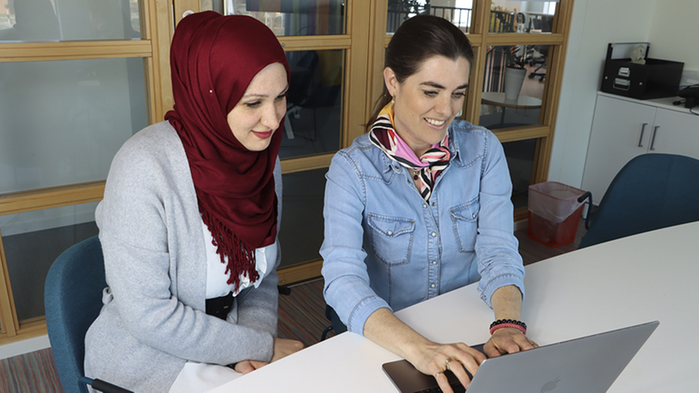 Afraa Hajjar, en av projektdeltagarna, tillsammans med grundaren Linda Törner. Foto: Wow Foundation