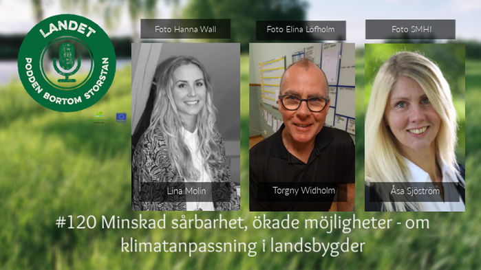 Lina Molin, Torgny Widholm och Åsa Sjöström gästar podden Landet som denna gång handlar om bland annat klimatanpassningar på landsbygder.